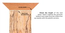 Note: Check the length of the end piece. Hold it against the groove’s bottom and make sure the miters line up exactly with the panel’s corners.