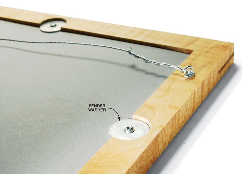 I enjoy making picture frames but always found it a pain to use tacks or staples to hold the picture in place. Plus tacks and staples are hard to remove when you want to change the picture. That's why I developed this method for holding the picture, glass, matting, and backing board in the frame. I use 1-in.-diameter fender washers and #6 by 3/8-in. pan head screws. I drill the recess for the washer with a Forstner bit and make the recess deep enough so the washer will bear against the backing board to hold everything snug.