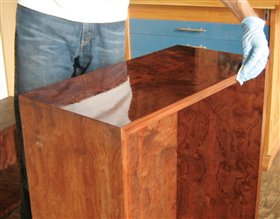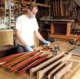 1. Brushing a finish is much easier before assembly. For the best results, thin the finish,