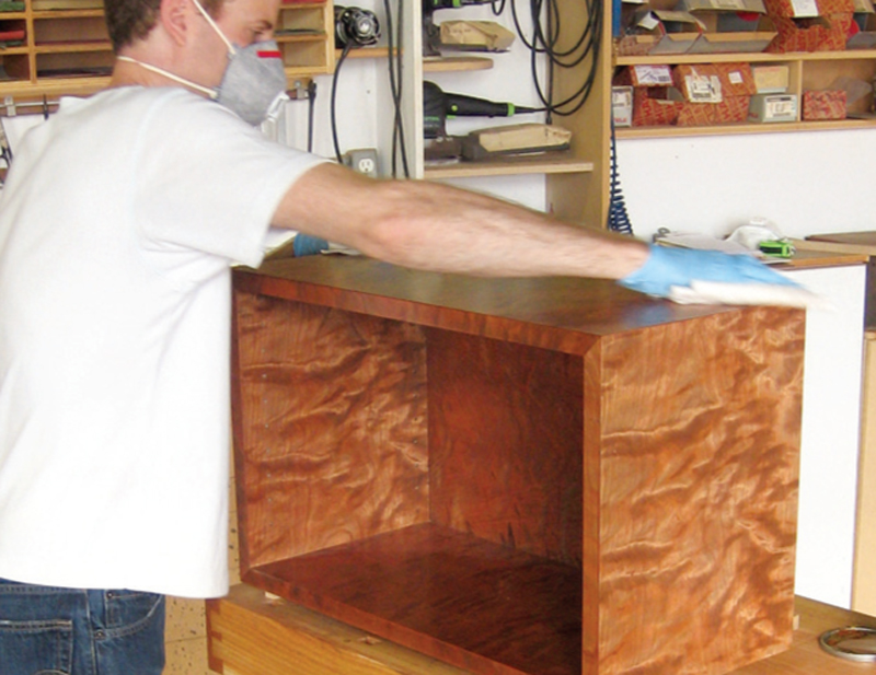1. Brushing a finish is much easier before assembly. For the best results, thin the finish,