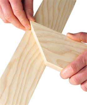 When you’re building a box or frame, the opposite sides must be precisely the same length. Otherwise, even the most perfect miters won’t form a tight joint. To compare lengths, hold the parts together on a flat surface and feel the ends. Your finger can detect differences your eyes can’t. |