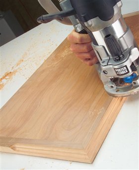 Flat, square stock is easier to miter, align and clamp than shaped parts, so you’ll often get better results by routing edges after assembly. To avoid splintering at corners, make a few light passes instead of one full-depth cut. Most importantly, start each pass on a side, not at a corner. |