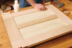 10. Dry-fit the frame and measure the center stile length from the bottom of one groove to the bottom of the other groove. Cut the center stile, and mark the centerline of the frame and the stile on both ends.