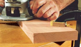 22. Rout edge molding for the desktop and upper cabinet top, using stock that is at least twice as wide as needed.This gives you more stability while machining, and you can rip the finished molding in half afterwards.