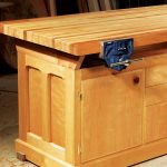 For those of you with a contractor’s saw on a mobile base, we’ve designed the kind of table you’d wish the saw had to begin with. It goes wherever the saw goes. Folded up, it doubles as a sturdy assembly table. Folded down, you still get an additional foot of support for cutting short stuff. We’ve also built in storage space for all the gear a saw needs: a rip fence, miter gauge, push sticks and extra blades. The only thing we haven’t figured out is how to store the legs; if you have a solution, send it in!