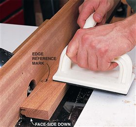 edge.Then attach a toggle clamp.Clamp the rails in the sled face-side up