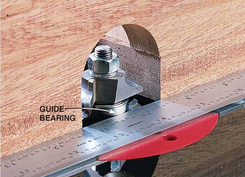 1. Set the fence flush with the bearing on the rail cutter, using a