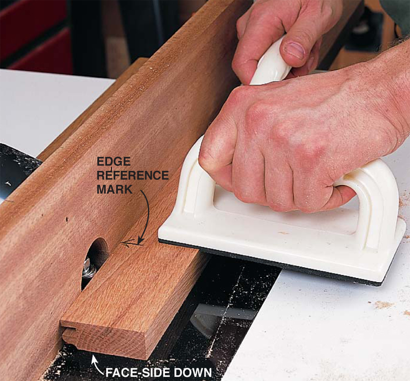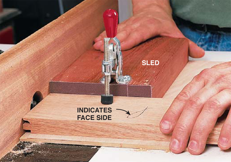 edge.Then attach a toggle clamp.Clamp the rails in the sled face-side up