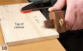 cabinet. Scribe the mortise’s long sides on the cabinet’s top