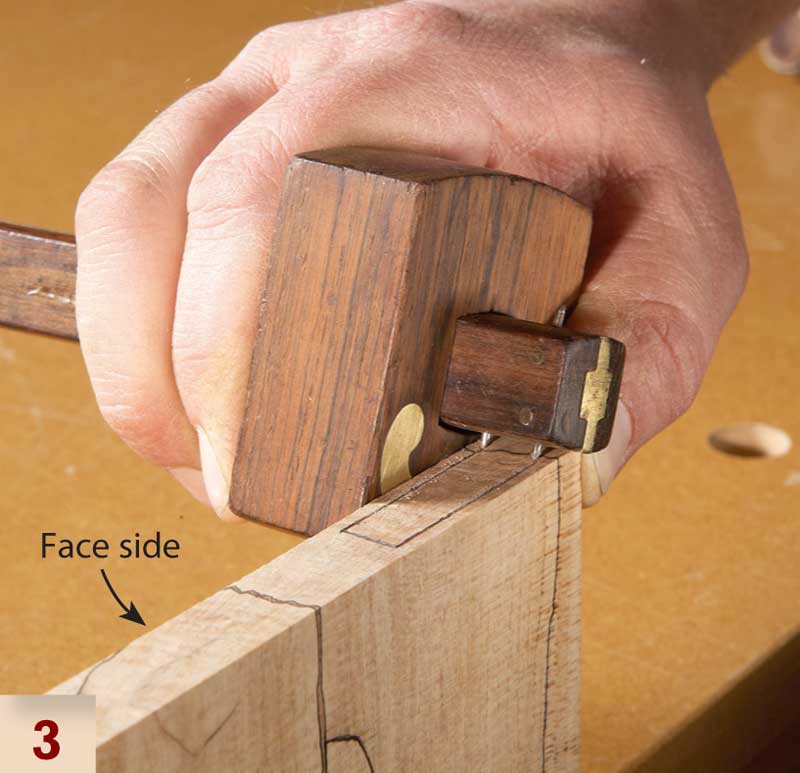 10. Disassemble the cabinet, then scribe mortises on the pieces