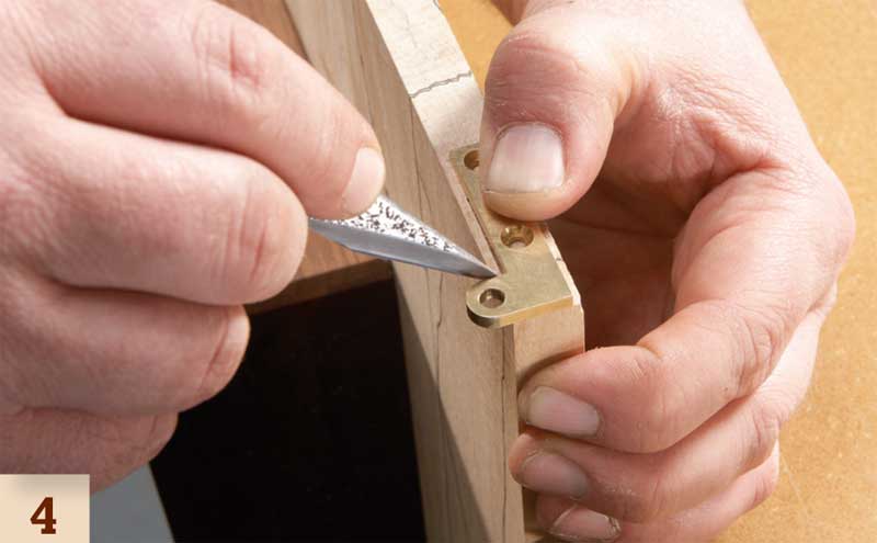 4. Scribe the hinge’s offset arm, again using the hinge itself as a