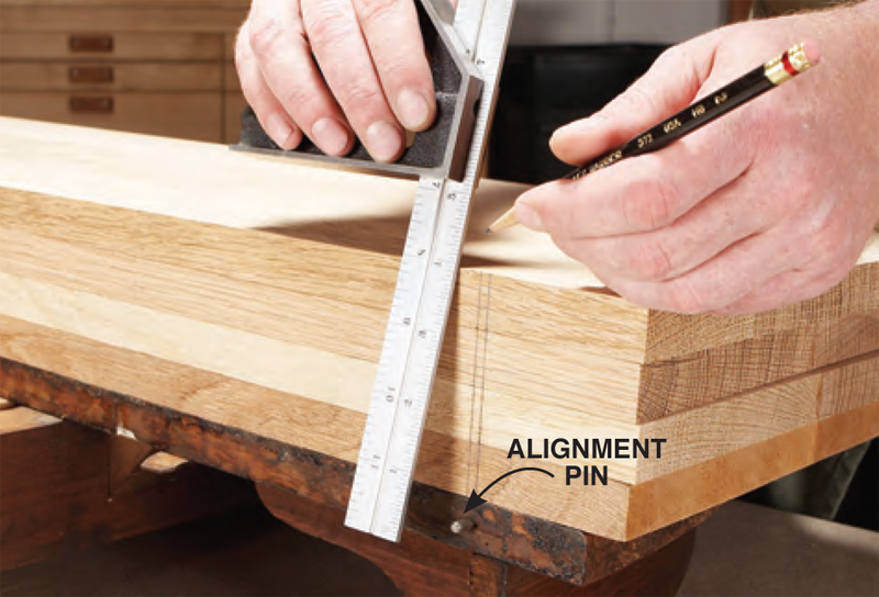 pins. Extend these marks across the top face of