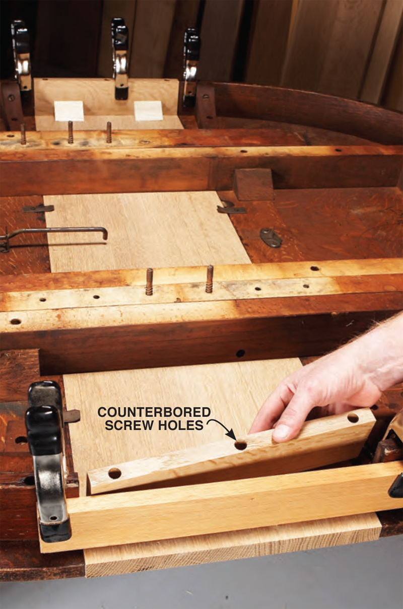 I’ll build new leaves using quartersawn white oak, the