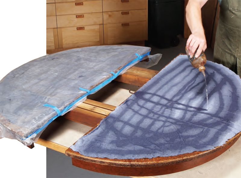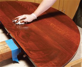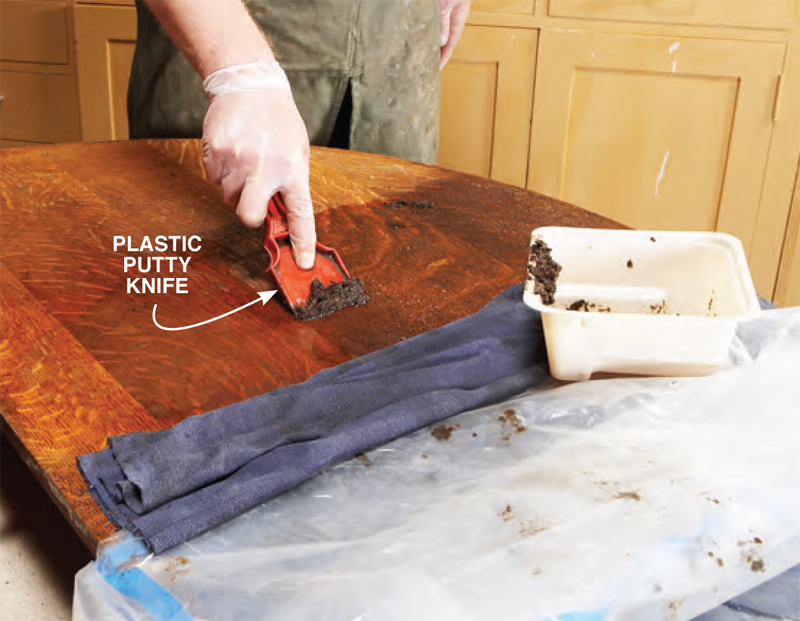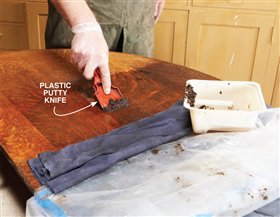 13. Remove the top’s old finish. Cover the top with cloth