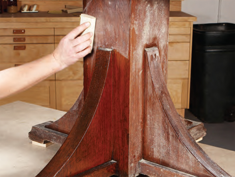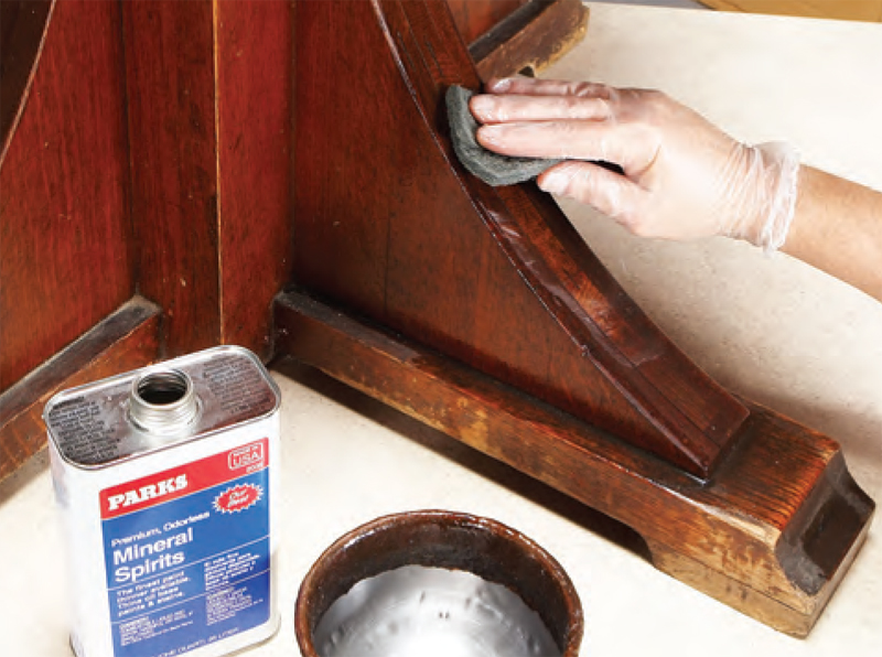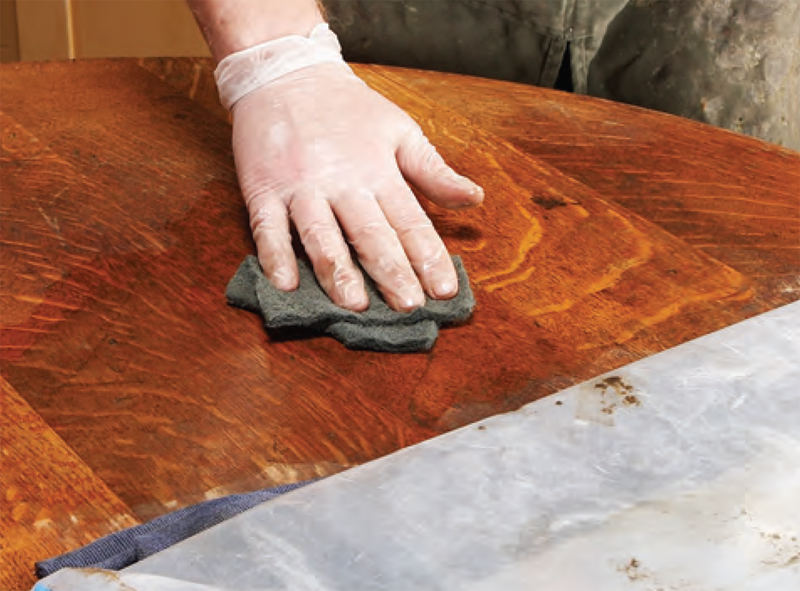 2. Gently clean the finish with steel wool and mineral spirits