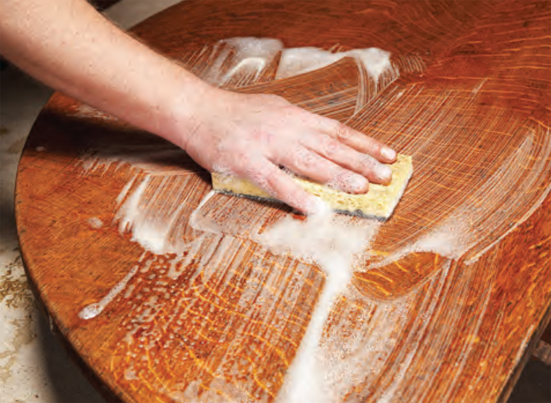 16. Gently scrub the stripped surface with mild dish soap