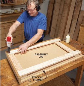 Build the support frames by stacking four stiles and two rails (Photo 2). Use a jig to hold the parts
