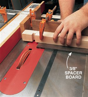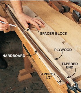 each shelf. Clamp a 1/4″ hardboard strip on the