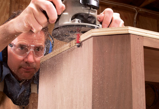 3. Trim the base top of the drawer unit even with the case. A perfect fit is important, and it’s much easier to achieve with a flush-trim router bit than by measuring and sawing.