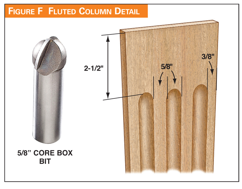 6. Flute the corner boards for the bookcases with a core box bit on your router table, tipping the board onto the router bit at the beginning and up at the end. Start and stop marks on the router fence provide the starting and stopping points of the flute.