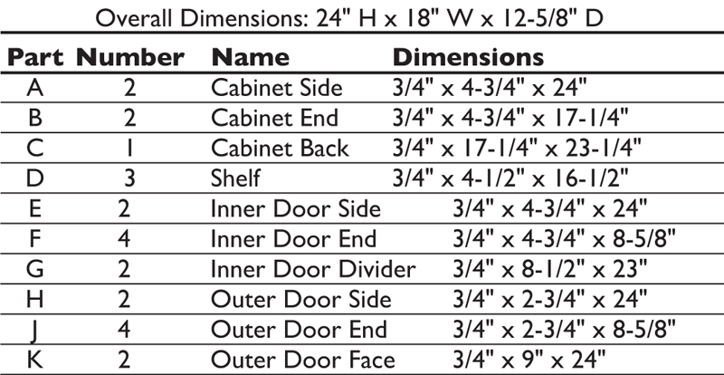 I used less than a sheet of 3/4-in.-thick plywood and two 4-ft.-long continuous hinges to build my cabinet. I got everything I needed at the local home center.
