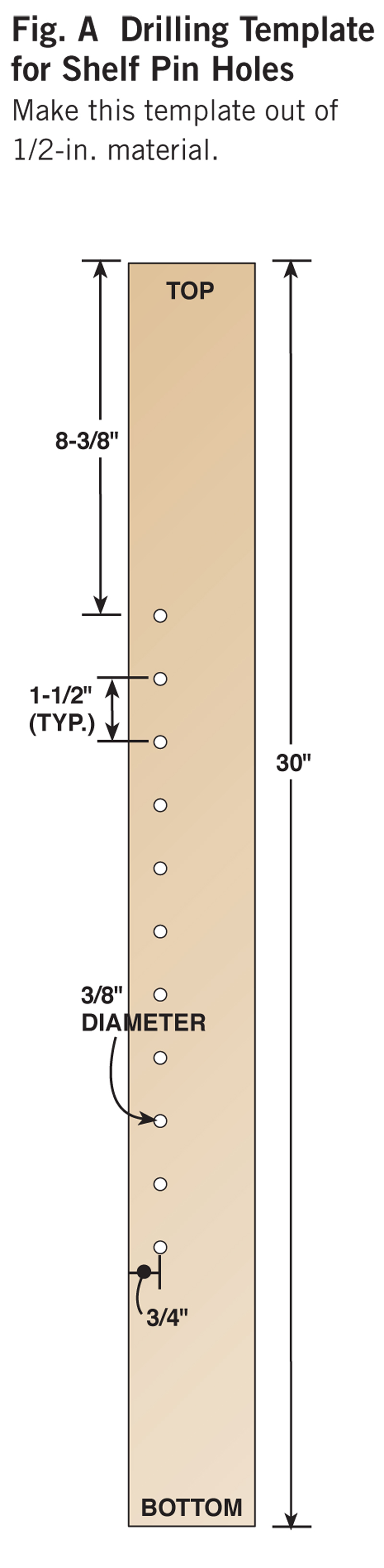 Woodcraft Supply, woodcraft.com, 800-225-1153, 1/4″ R x 1-1/2″ D Ogee Bit, #812290, $41; Vertical Handle Toggle Clamp, #143934, $13.50 ea.; Home Center/Hardware Store Minwax Special Walnut Stain, #224, $10 per Cutting ListFig. A: Drilling Template for Shelf Pin HolesDetail 1: Offset Biscuit JointExploded View |