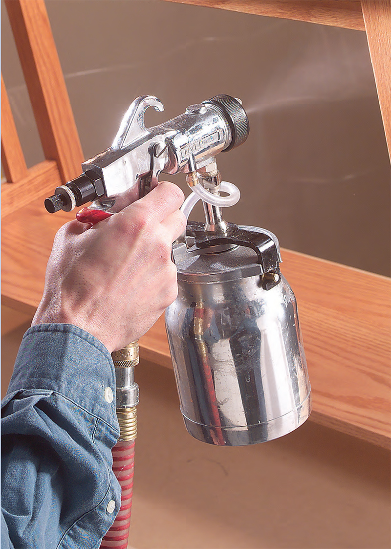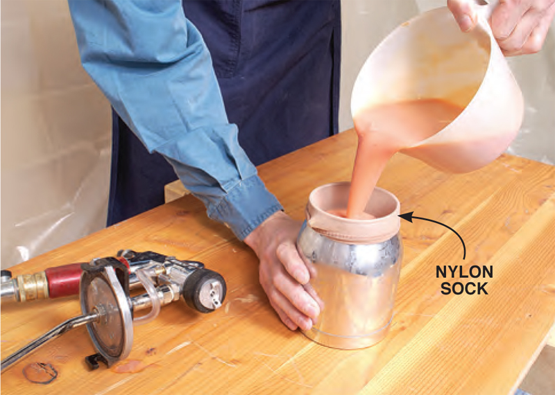 Strain the finishWhen you pour finish into the sprayer’s cup, strain it |