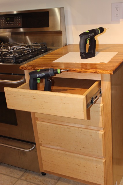 By its nature, partial in-situ construction can be, and is often done, in a non-linear fashion. Today’s self-close-soft-close drawer slides are a miracle in engineering, but the tolerances between drawer sides and face frames or cabinet sides is tight… the drawer width essentially must be perfect for the slides to function well. By building the drawers before the face frames, I could have made tiny adjustments to the face frame dimensions if necessary to make sure the drawers fit perfectly… it is a lot harder to adjust the size of a finished drawer.
