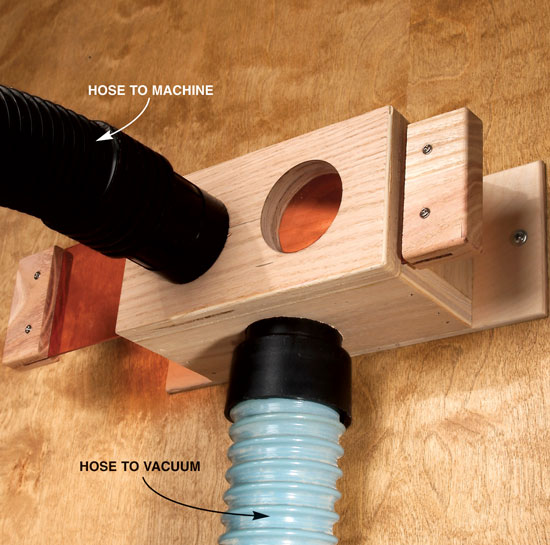 In my small shop, I use a shop vacuum to collect dust from several tools. To cut down on the need to swap hoses, I built this manifold with two blast gates. Now I transfer suction with a flip of my wrist.