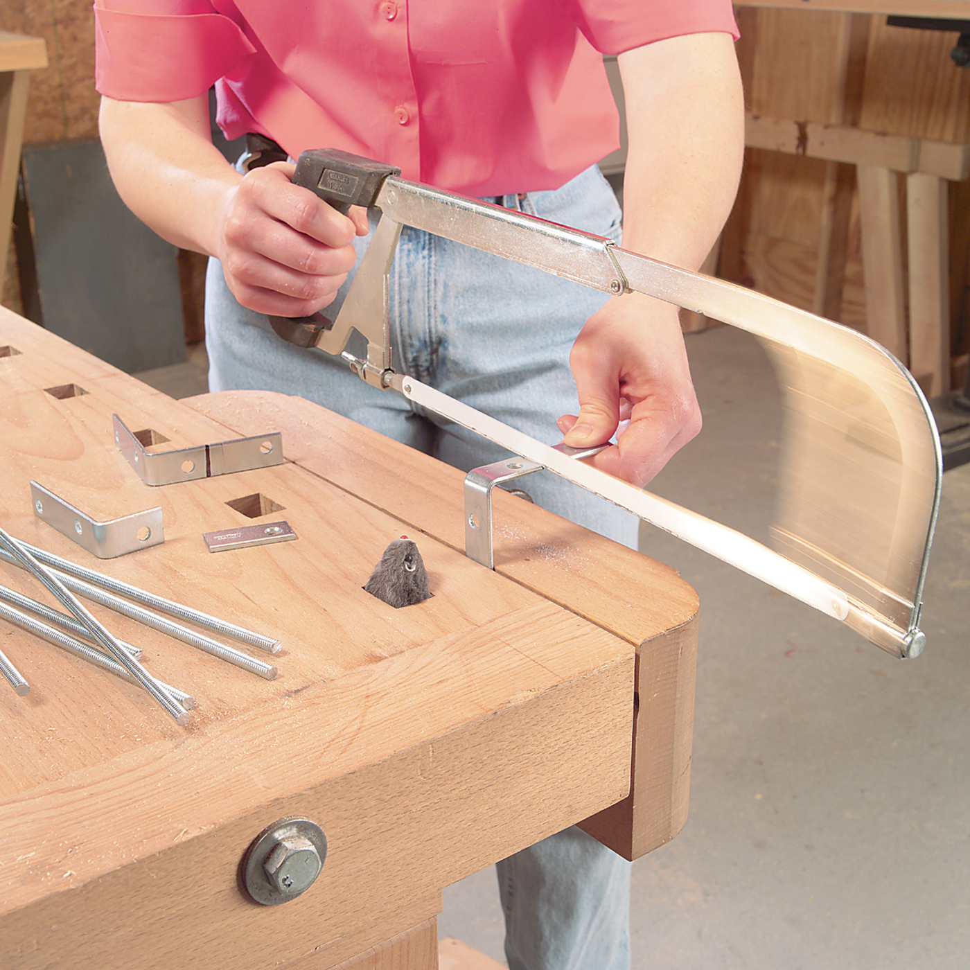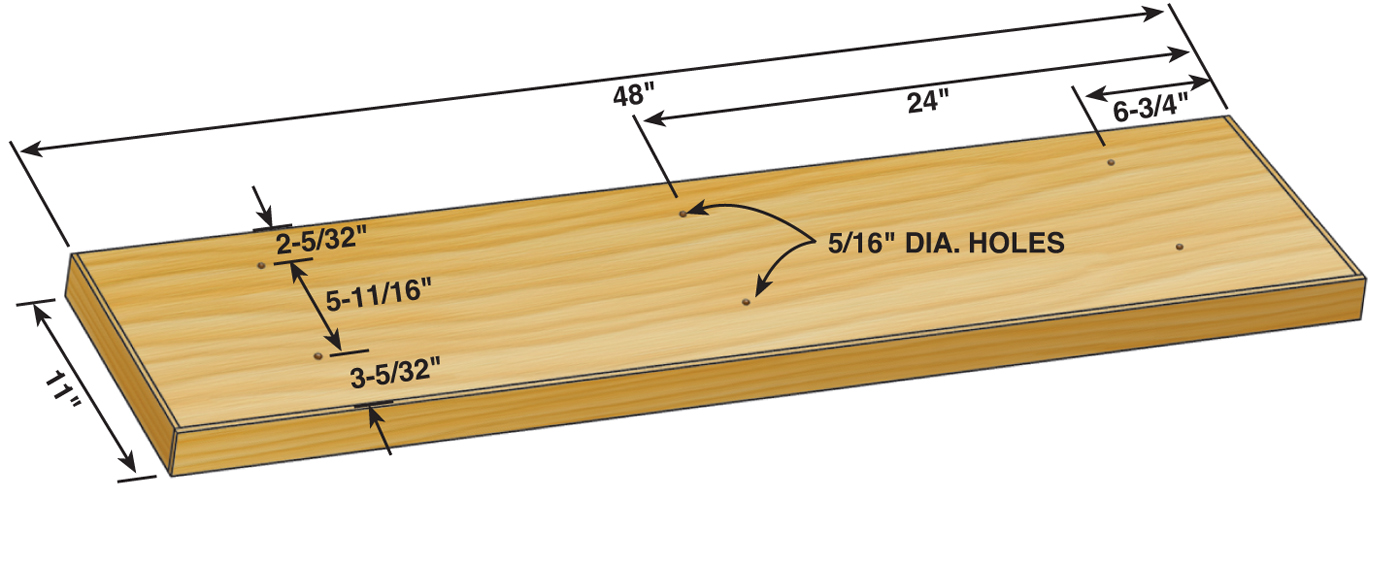 18. Saw the mounting L-bracket and threaded rods to length. The length of the short leg on the mounting angle is not critical, just cut it off about 1/4-in. beyond the first hole.