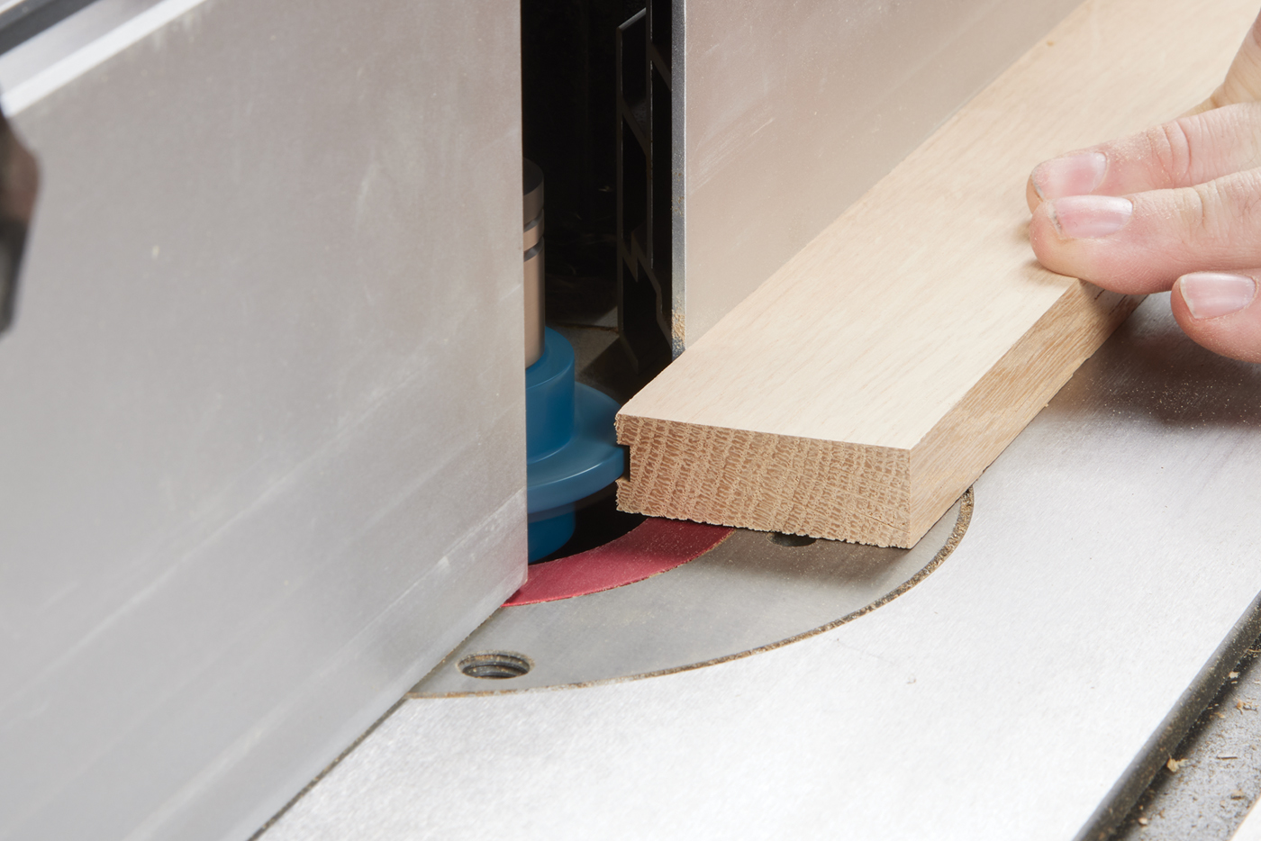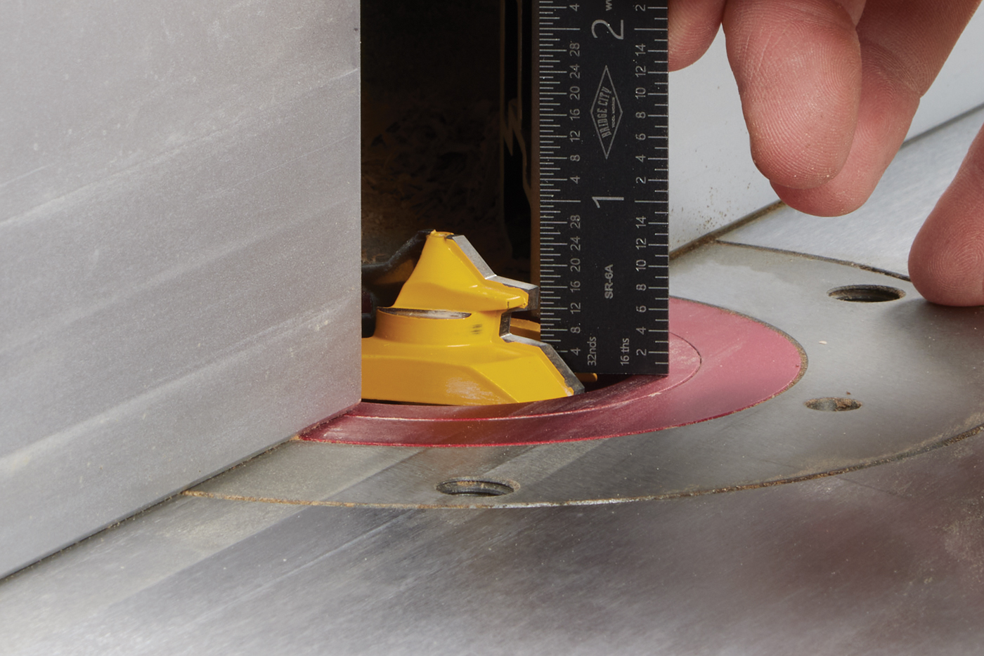 1 Set the bit so that it’s as close to centered on the thickness of the stock as possible.