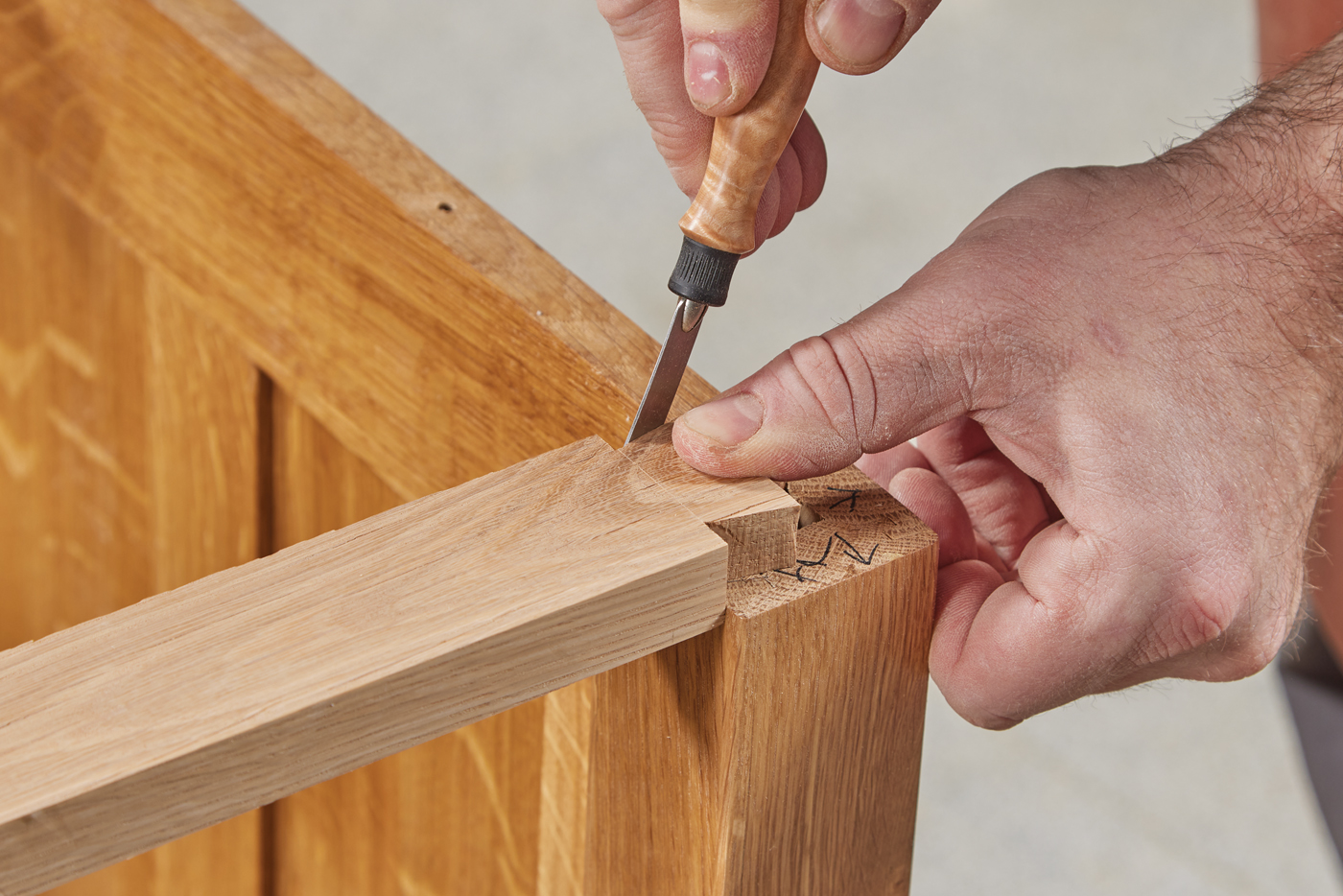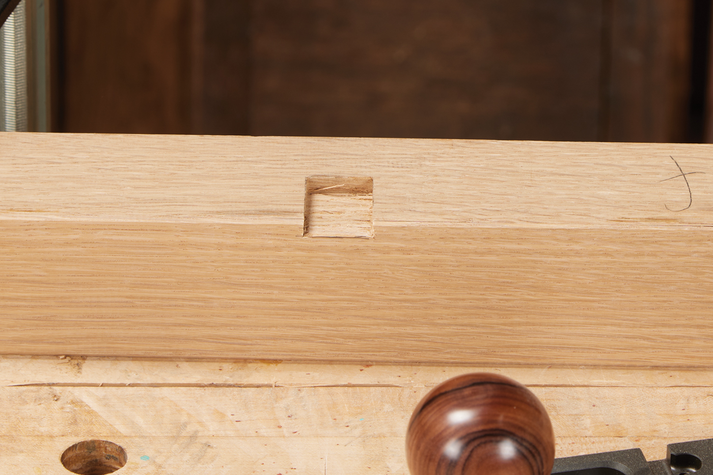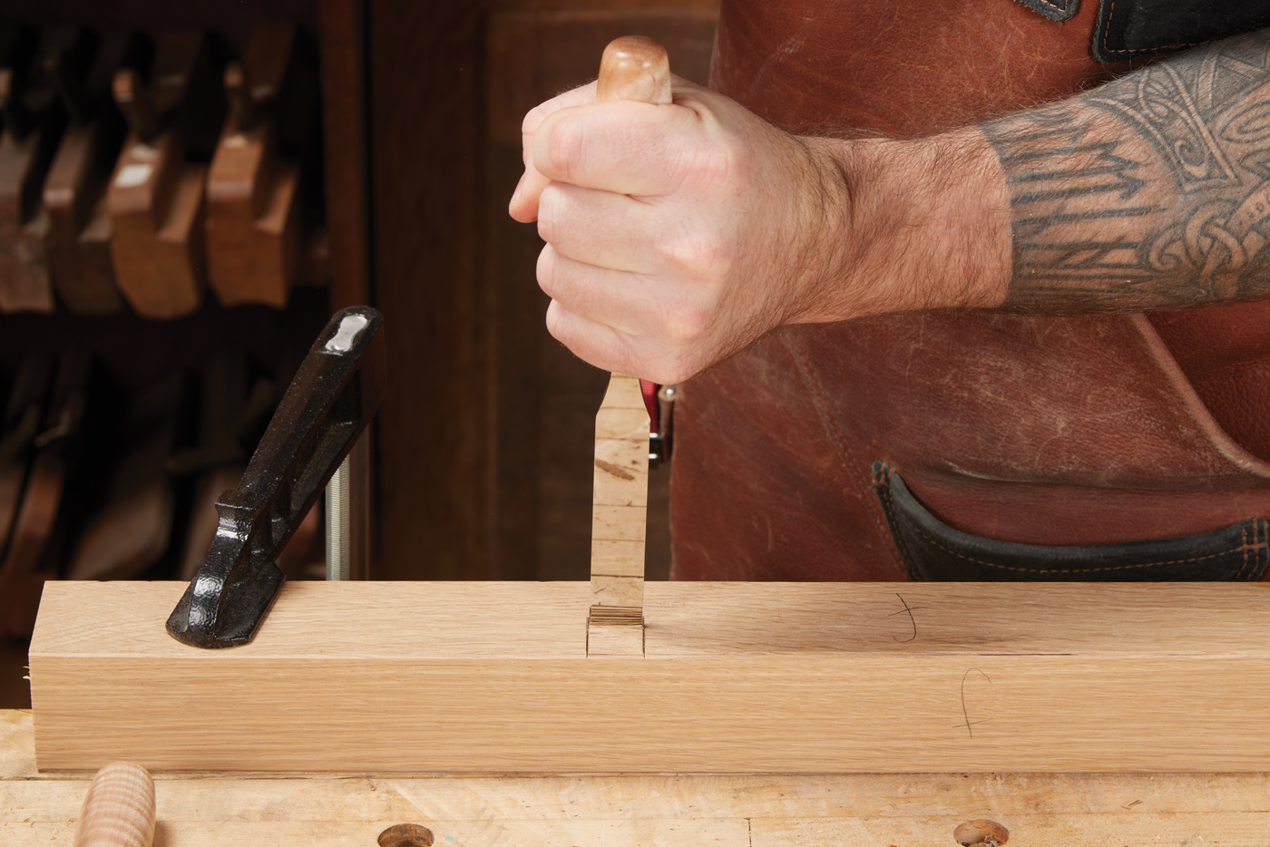 9 Define the outline of the mortise with a chisel before chopping the inside waste.