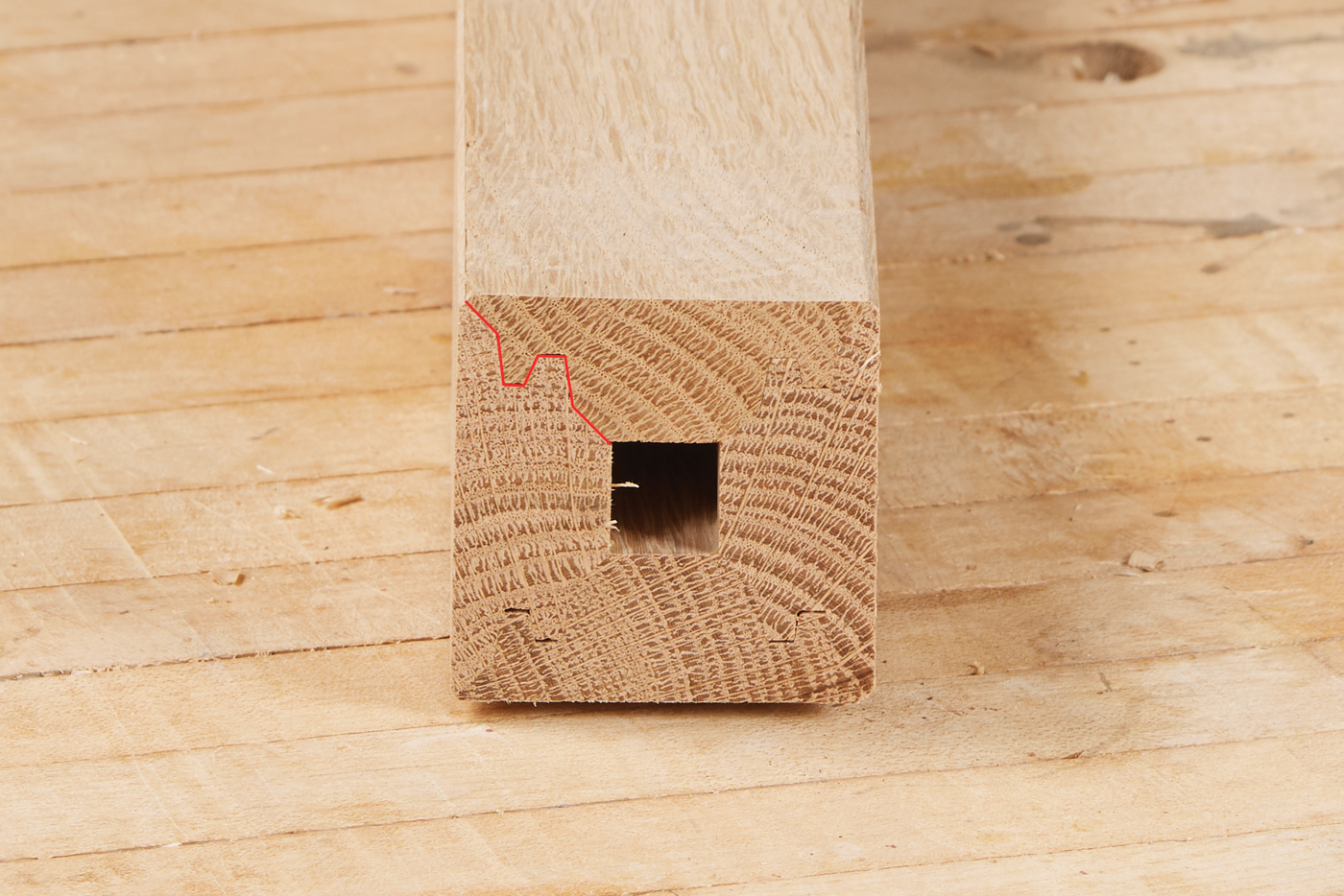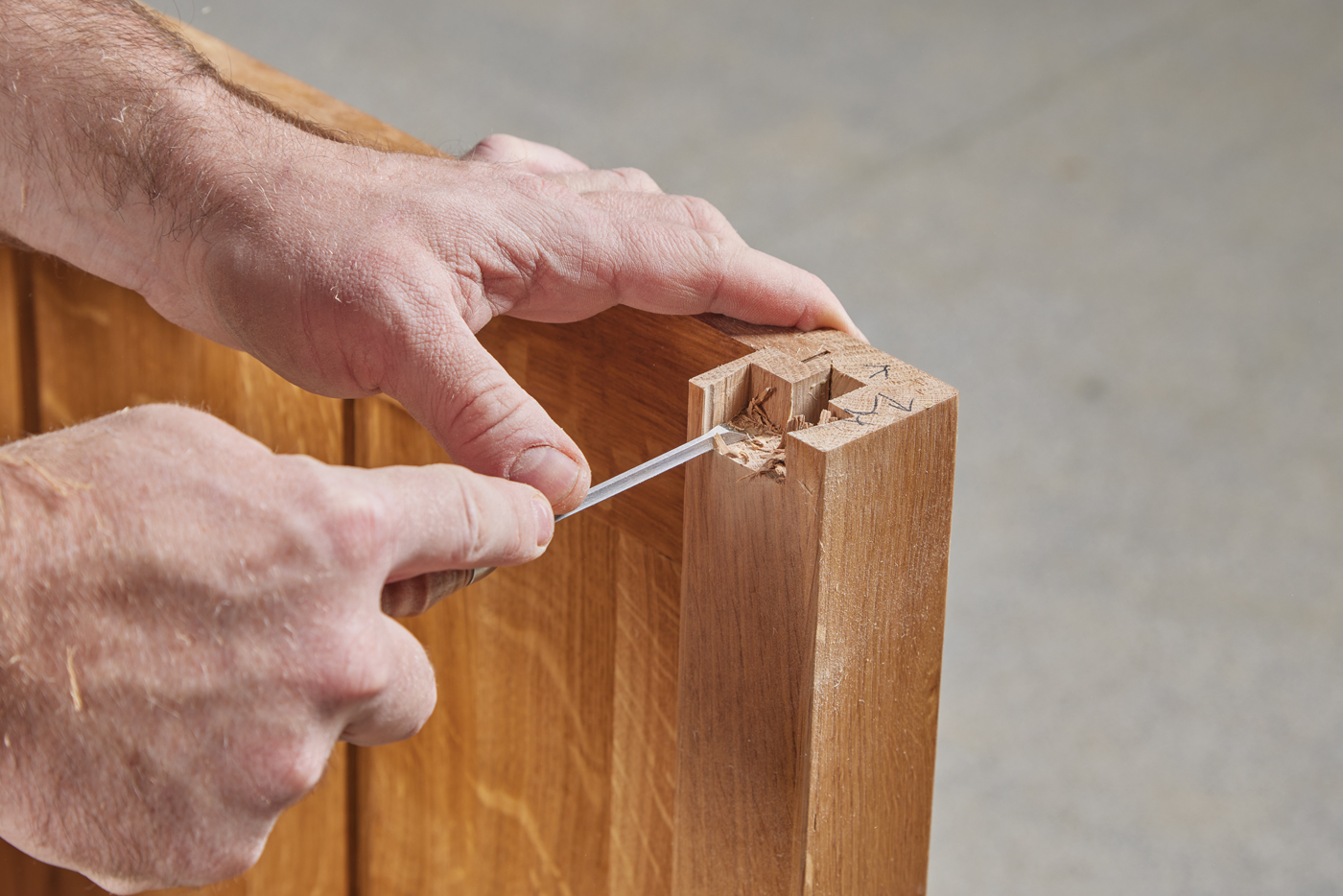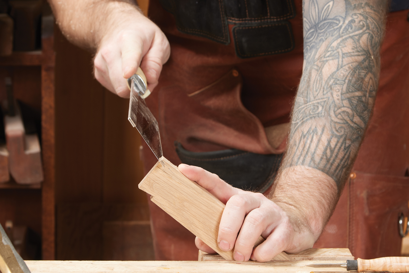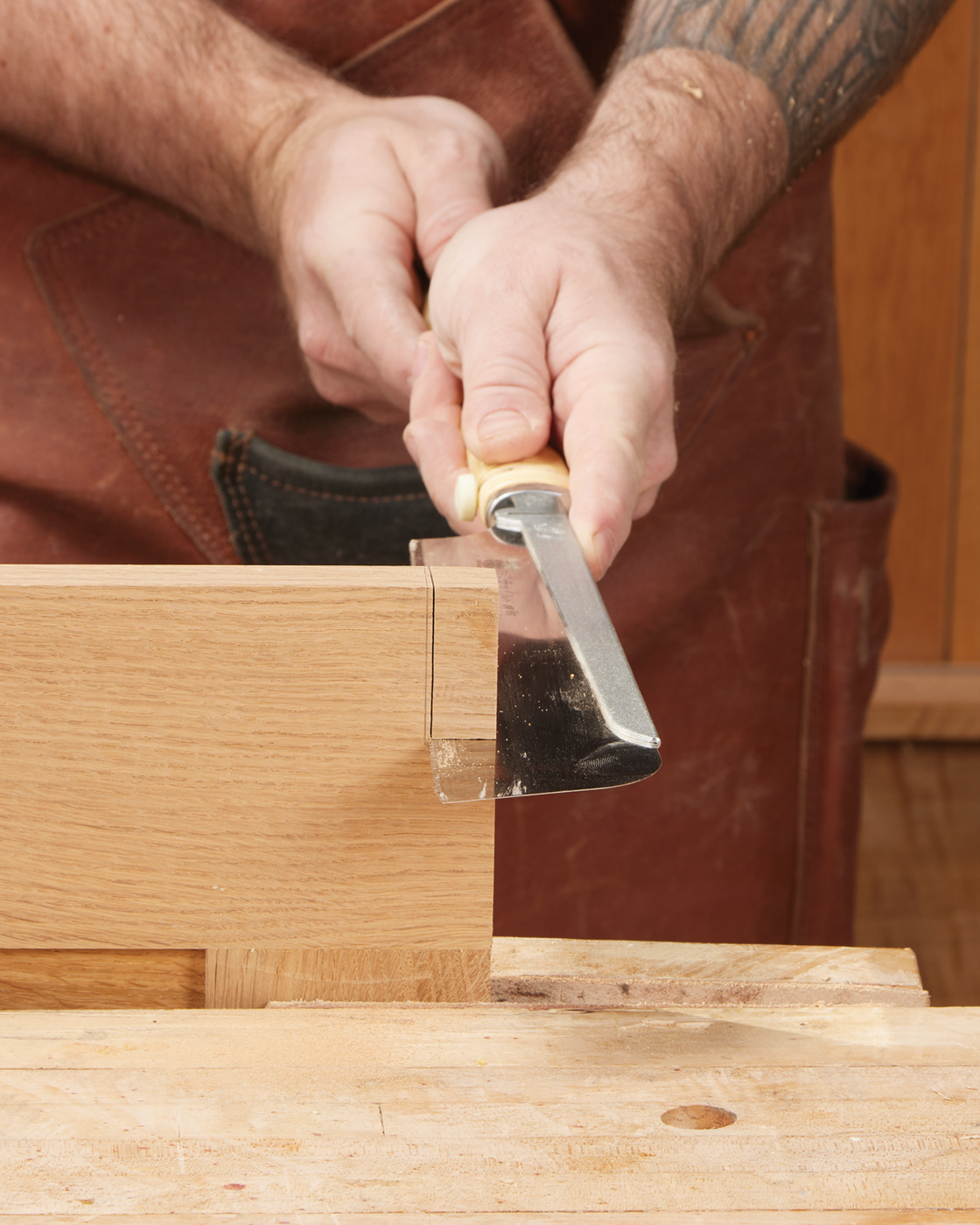9 Define the outline of the mortise with a chisel before chopping the inside waste.