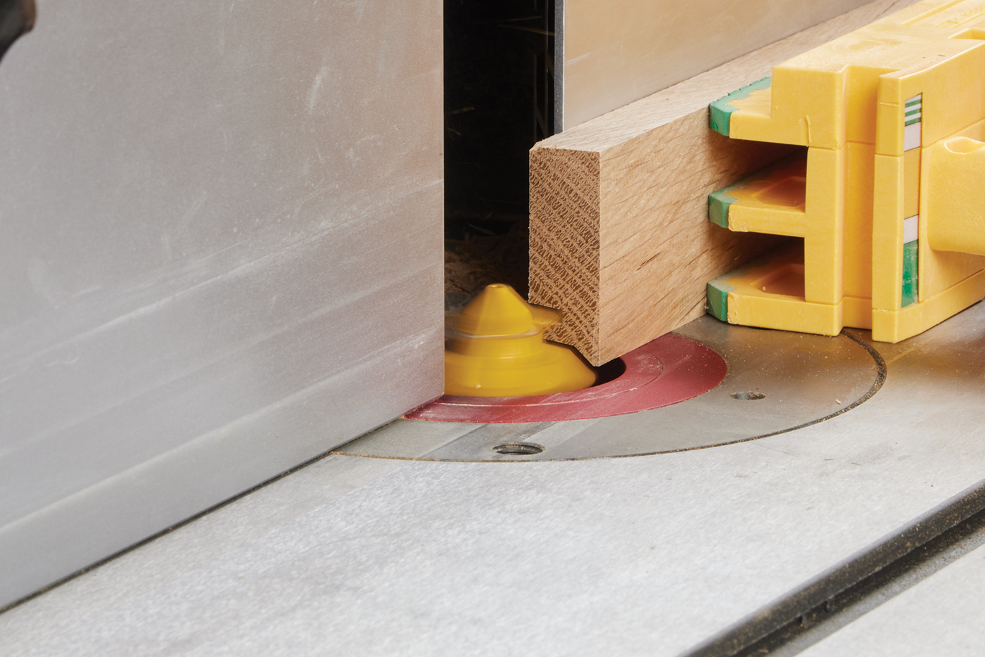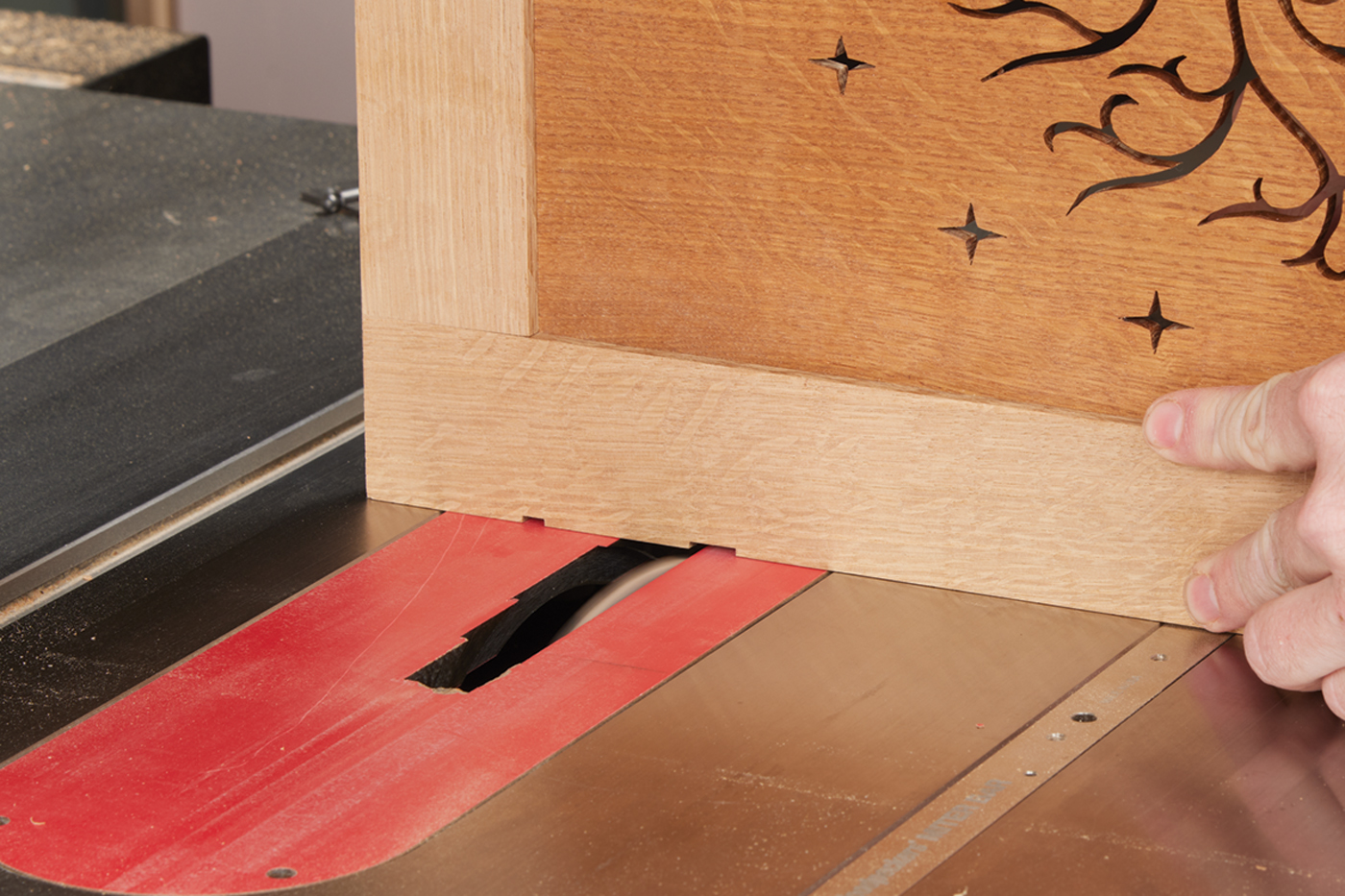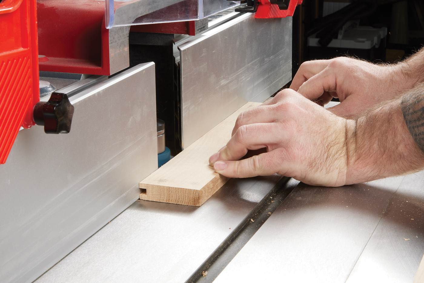 21 With the same dado blade loaded up, cut the tongue on the panels. This is a thicker tongue, however, so drop the blade down and refine it with a shoulder plane.