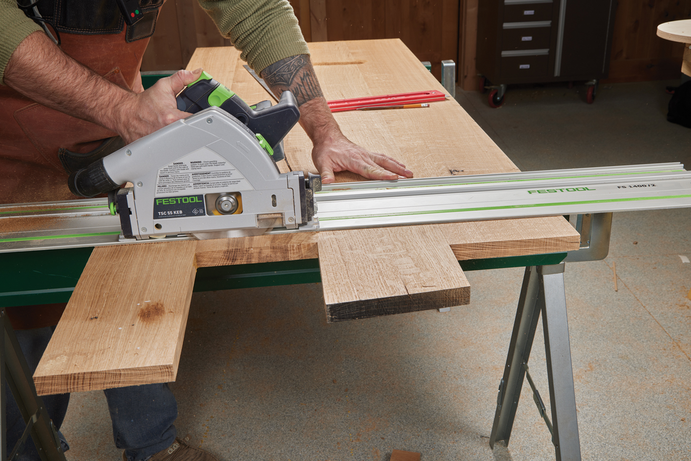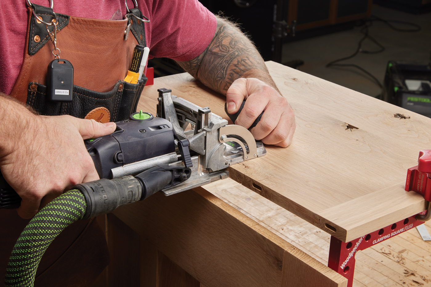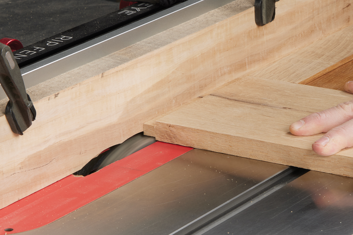 21 With the same dado blade loaded up, cut the tongue on the panels. This is a thicker tongue, however, so drop the blade down and refine it with a shoulder plane.