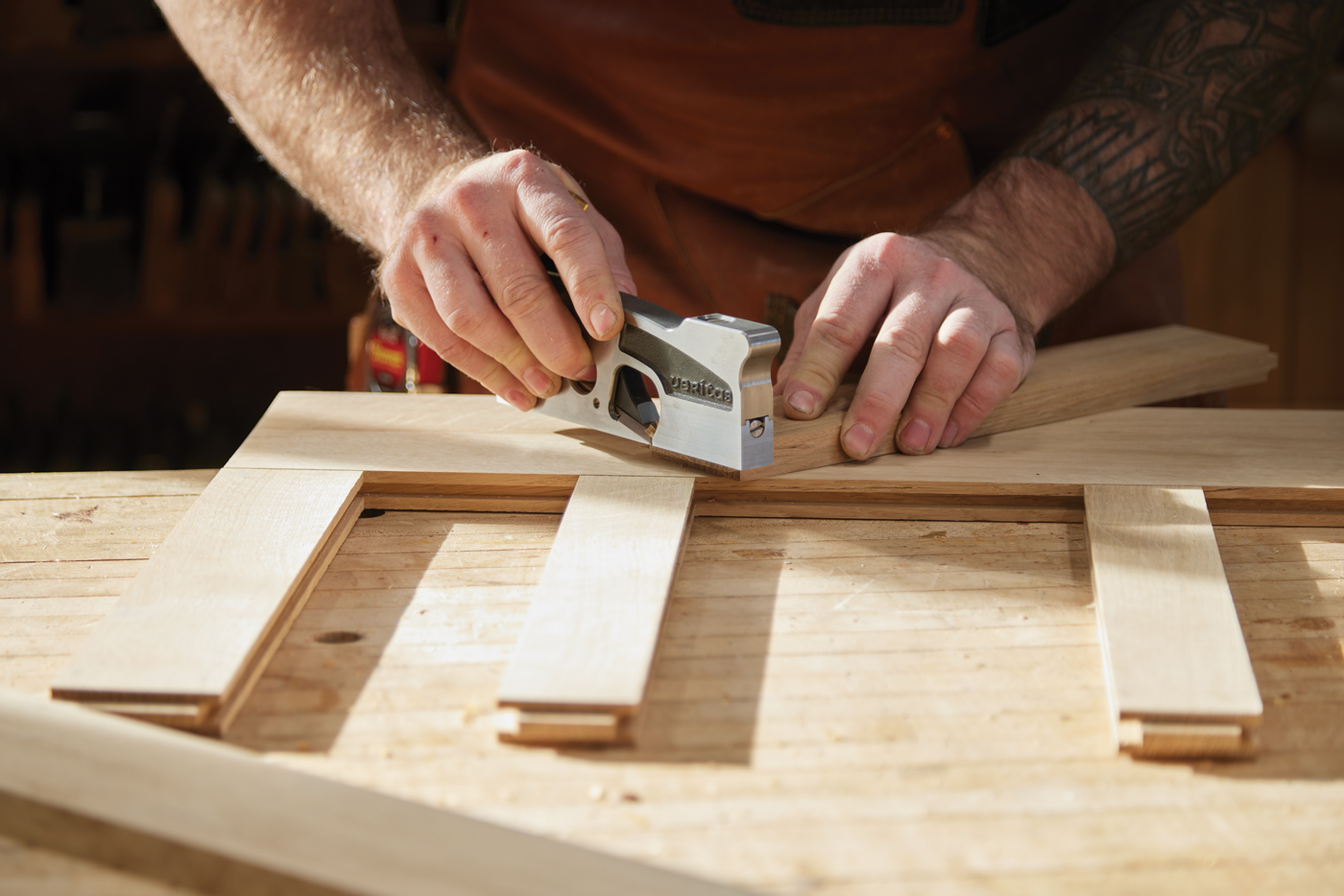 17 A sharp shoulder plane takes care of fine-tuning the fit of the joints.