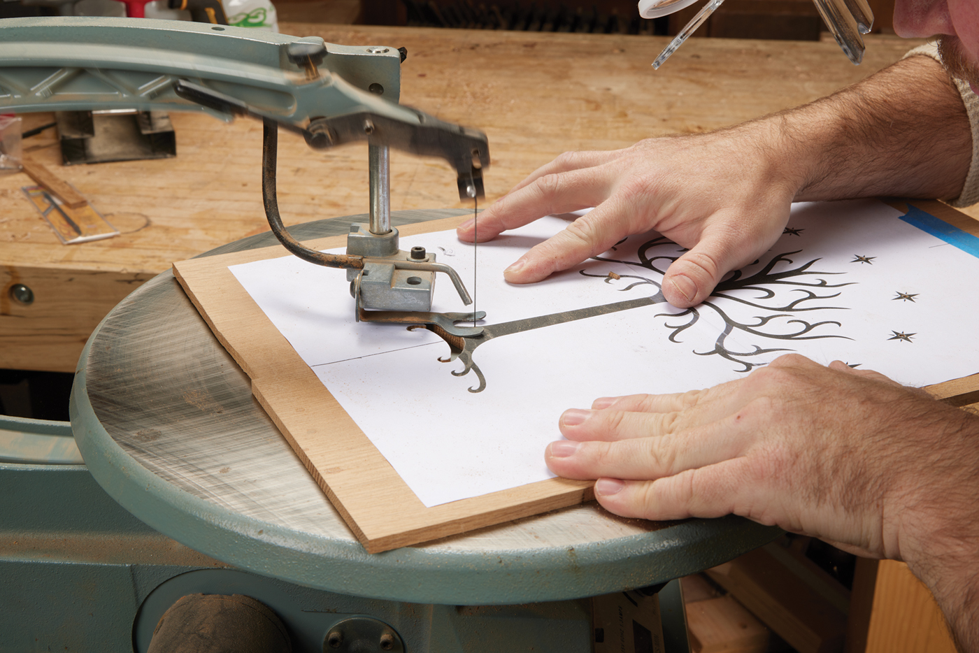 The final piece of the puzzle is the door for the cubby. I wanted a door with some ventilation for the computers. I opted for a decorative cutout. Some of you may recognize this image as the icon of the one that grew in the court of the fountain in Minas Tirith. I’d provide a template for this, but I’m afraid Peter Jackson may come after me if I do. The pattern is printed out and applied to a panel. A few hours at the scroll saw left me with a door panel that I am pleased with. (I’m a big Lord of the Rings fan; what can I say). The panel is installed in a door frame made with the same tongue and groove joinery as the rest of the desk panels. I bought a nice pair of butt hinges to install the door. The stiles were mortised at the table saw. First, set the blade to match the hinge leaf thickness. Then, just nibble it away until it’s full width. Positioning the door for mounting was done with a few of the 3D-printed spacers that I showed in my Editor’s letter. You know, the last desk I really built was back in high school. That desk is still floating around somewhere today. I’d like to think that both of these will be floating around at some auction in a hundred years, inspiring another woodworker.
