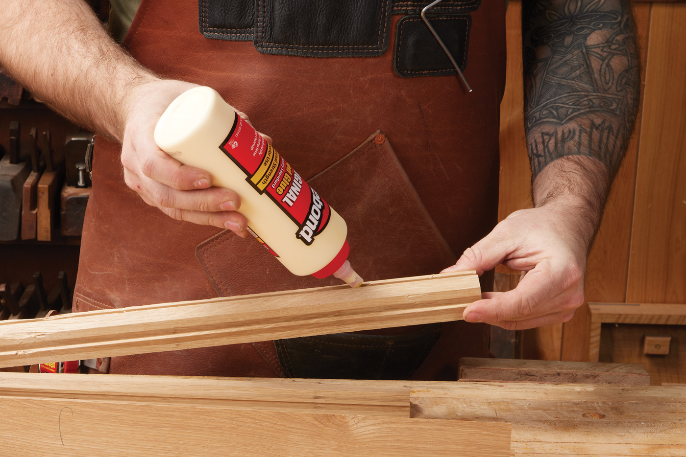 6 The locking miter joint creates a groove which is the perfect place to apply a bead of glue.