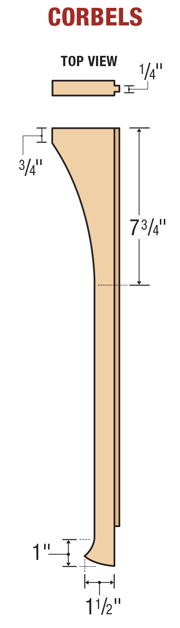 37 Glue the corbels in place on the outside of the legs, making sure they’re flush at the top.