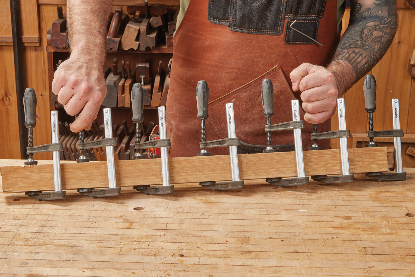 35 Clamps strung across the dividers hold everything tight while the glue sets.