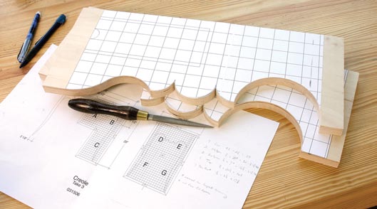 Hanging on those classic bones are a few shapely French curves. The sinuous legs and the scalloped aprons make the table appear difficult to build, but it’s not the curves that will trip you up. If you prepare your patterns with care, the curves will come easily; the real challenge is the overall fit of the parts – but isn’t that always true?