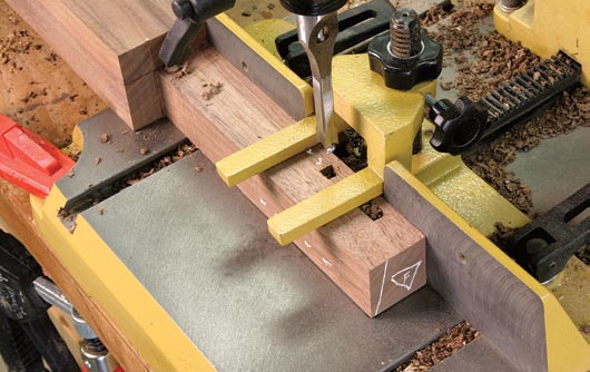 Make your mortises a little deeper than the tenons are long. The two mortises in the legs may end up meeting a bit at one corner, but that’s OK. You’re not removing material that will ultimately assist in strengthening this joint.