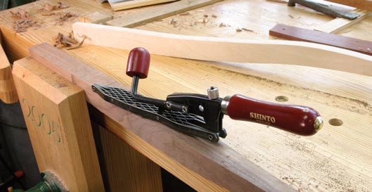 Glen Huey convinced me to try out the Shinto Saw-Rasp. It is, in essence, a bunch of hacksaw blades riveted together into a boat-shaped tool. One side is coarse and the other is fine. You can buy this tool with or without a handle. It is a nimble tool and is easy to master, much like a high-quality rasp.