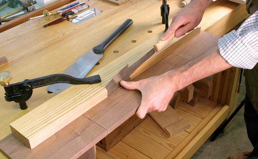 Now settle in and fit each joint. Your best friends during this process are a small square, a sharp eye and an old joiner’s trick. The square can show you where things are amiss. And your sharp eye?