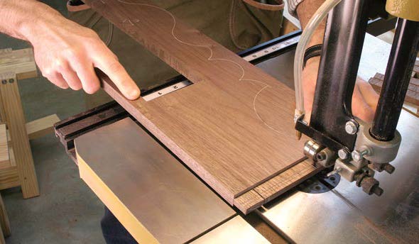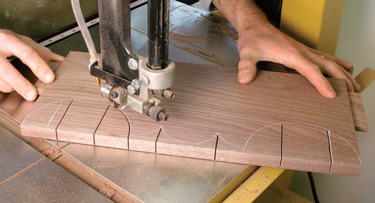 Trim the edge cheeks of your aprons with a band saw. Then cut the edgeshoulders. Cut close. But not too close.