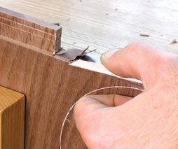 Cleaning up the corners is easy if you’ve cut out your aprons carefully on your band saw. A few quick cuts with a sharp chisel will bring the tight corners into line.