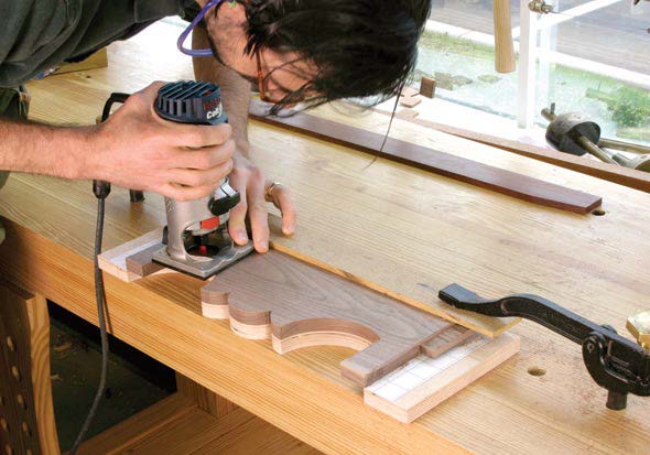 When conquering any complex shape, such as the scalloped aprons, making a template for pattern-routing is a good idea.