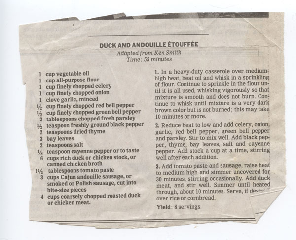 When complete, the table is quite a spicy charmer. If you want the complete effect in your home, try serving it up with some duck étouffée – you’ll find the recipe below. PWM