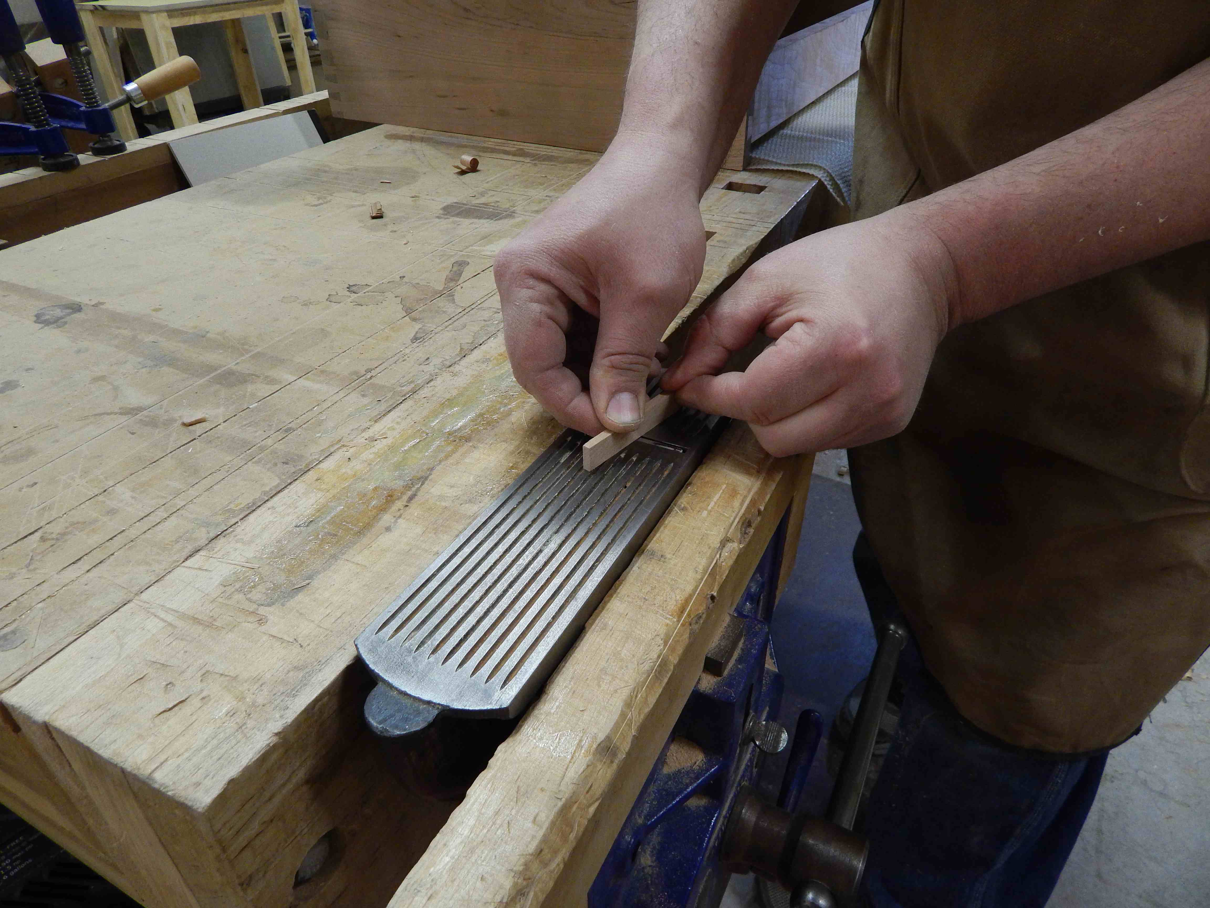 Yup, it's late. But it's still Friday. It's been a whirlwind of a week. While working on a project today, I got to use one of my favorite techniques. Most seasoned woodworkers are well aware of this one, but not everyone is a seasoned woodworker, and this is just one of those things that everyone should have in their bag of tricks. What do you do if you have a tiny part that needs trimming? Don't head for the tablesaw. Clamp a hand plane upside down in your face vise and go cordless!
