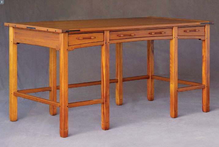 As on the Aurora Bridge, an arch defines this desk. Here, the drawer rails form a continuous arch that passes through the front legs, defining the shape of the drawers in the process. Cloud lift details visually support this arched span by providing additional mass at each end. (This mass also genuinely strengthens the joints.) The cloud lift—a rise in a horizontal line—is a design detail the Greene brothers borrowed from Asia. It’s so named, because it was was originally meant to depict clouds.